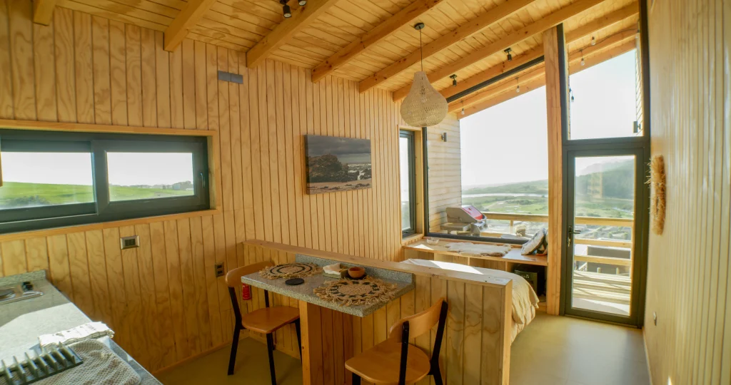 Contamos con tres lodges independientes —Buca, Pacífico y Pilpilén— construidos con materiales nobles y terrazas amplias que invitan a bajar el ritmo y conectar con la naturaleza.